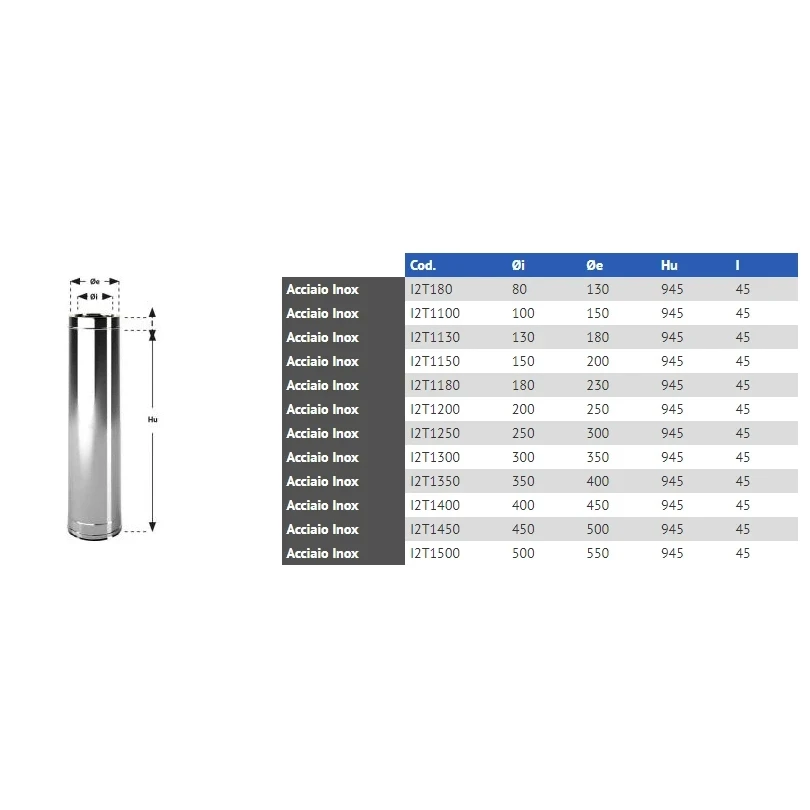 Canna fumo altezza 1 metro doppia parete acciaio inox Iso25 De Marinis