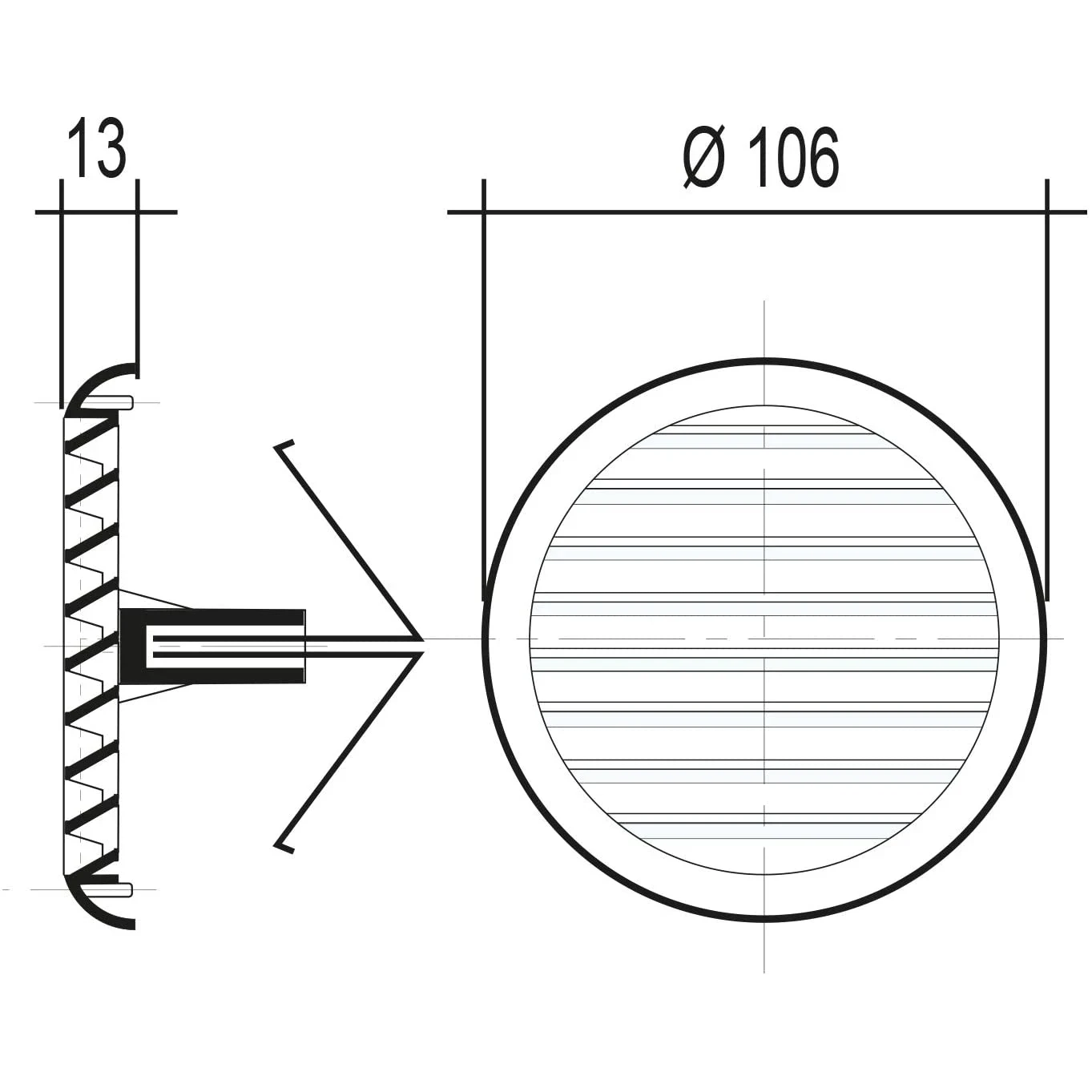 Griglia tonda e universale con molla, della linea Ventilazione First, leader dei prodotti per l’edilizia. Griglia tonda e universale con molla è una griglia semplice che consente il massimo passaggio aria in rapporto all'apertura e alla struttura delle alette. La First ha studiato la linea Ventilazione per le griglie dotate di molle flessibili che, oltre ad adattarsi a vari diametri di tubi e alle imperfezioni di fori nel muro, consentono una rapida installazione e la possibilità di rimuovere comodamente la griglia. Disponibile di vari diametri e colori, per la griglia tonda universale con molla Ventilazione First, si sconsiglia l’utilizzo di malte, stucchi, collanti e siliconi che impedirebbero la dovuta manutenzione.