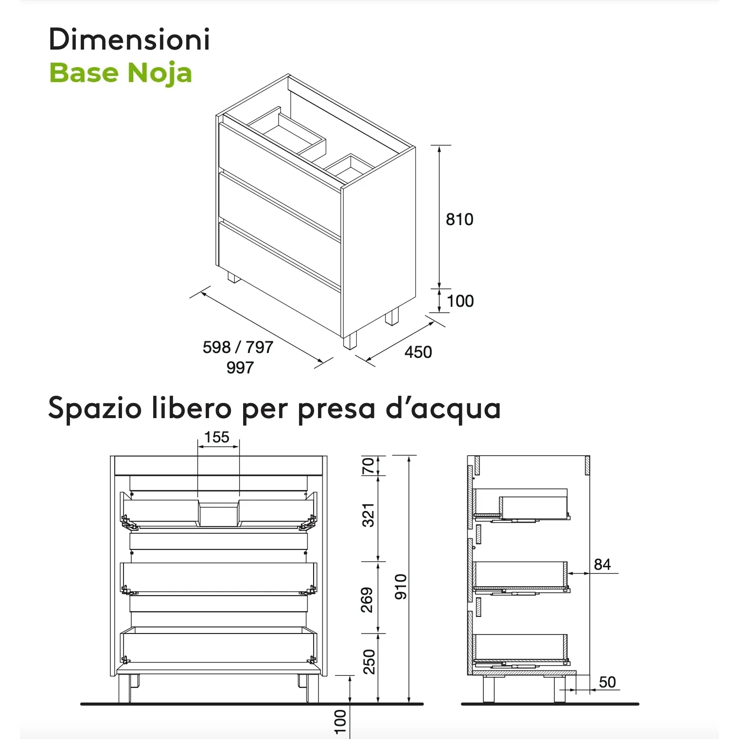 Mobile base terra da 80 centimetri con lavabo specchio luce 3 cassetti Arenys Salgar
