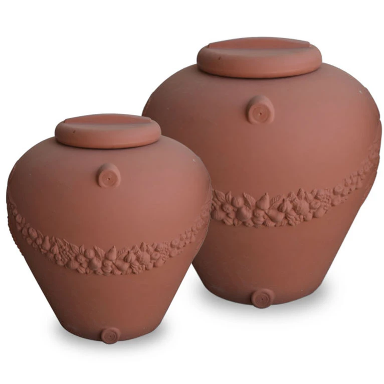 Serbatoio Giara festonata creato dal gruppo Diliberto in polietilene con ornamenti. Il serbatoio in polietilene Giara liscia Diliberto possiede caratteristiche di capacità e di struttura differenti, capace di soddisfare qualsiasi richiesta ed utilizzo. Grazie ai cicli produttivi all’avanguardia e ai continui controlli sistematici, la gamma Diliberto assicura la massima affidabilità e l’assoluta resistenza nel tempo. Il serbatoio Giara festonata Diliberto è fabbricato in polietilene atossico appositamente per poter essere usato con contenuti di tipo alimentare come acqua potabile o vino. Giara festonata è un serbatoio in color terracotta con tolleranze sulle capacità nette +/- 7% e tolleranze sulle misure +/- 5%.
